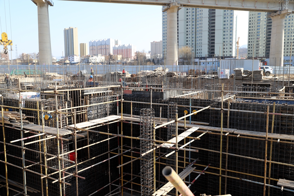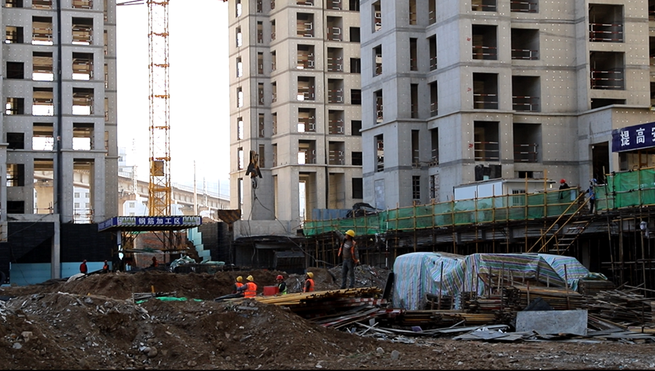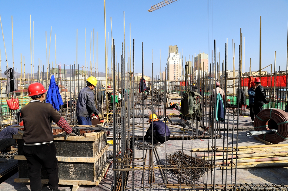 目前,层楼建设正在进行钢筋绑扎、模板支设、调运物料等作业,地下车库正在进行场地基础平整、打线等作业,工地上热火朝天,工人们干劲十足。
