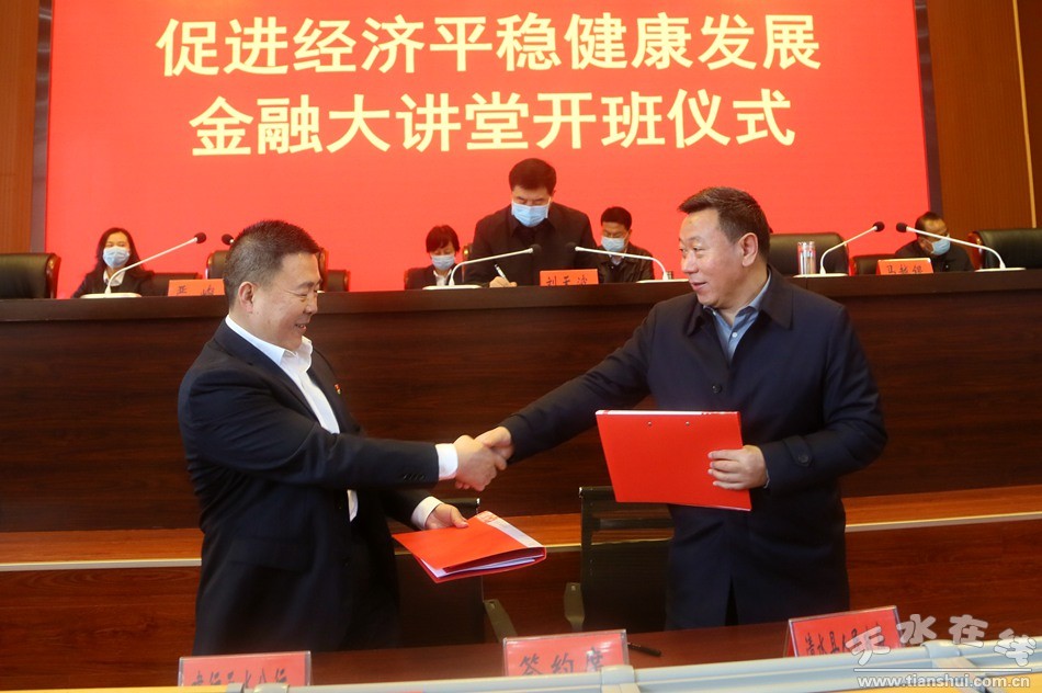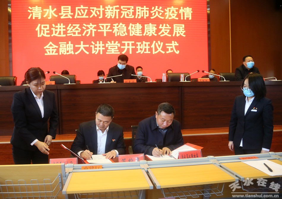 2月29日,在清水县应对新冠肺炎疫情促进经济平稳健康发展金融大讲堂培训班开班仪式上,建行天水分行与清水县政府签订战略合作协议。