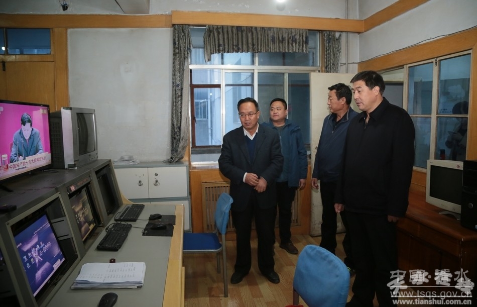 10月17日下午,市人大常委会副主任、清水县委书记刘天波深入县广播电视台开展专题调研。县政协副主席李应祥一同调研。 刘天波一行先后实地察看了县广播电视台播控室、记者部、制作室、演播室等基础建设情况,看望慰问了一线工作人员,了解了新闻采编、制作播出等工作流程,并认真听取县广播电视台及有线网络公司负责人工作情况汇报,详细了解县广播电视台目前各项工作运转情况、有线网络覆盖工作以及存在的困难和问题。
