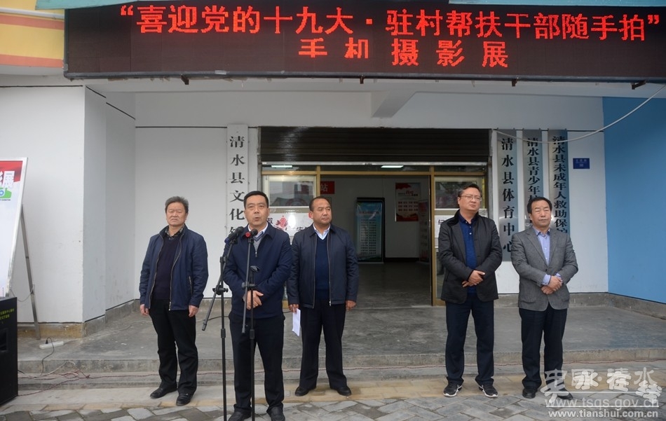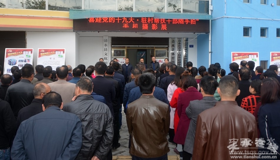 为全面展示近年来全县驻村帮扶工作成效,努力营造狠抓脱贫攻坚工作的浓厚氛围,喜迎党的十九大胜利召开。10月18日下午,由县委农工部、县文化馆主办的“驻村帮扶干部随手拍 喜迎党的十九大”手机摄影展隆重开展。县委副书记王新强,县委常委、组织部长周济,县人大常委会副主任周建新,县政协副主席成接福出席开展仪式;18乡镇和128个县直帮扶单位干部代表,全县各级驻村帮扶工作队员代表,摄影爱好者共计300余人参加开展仪式。