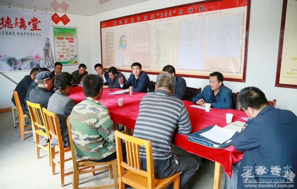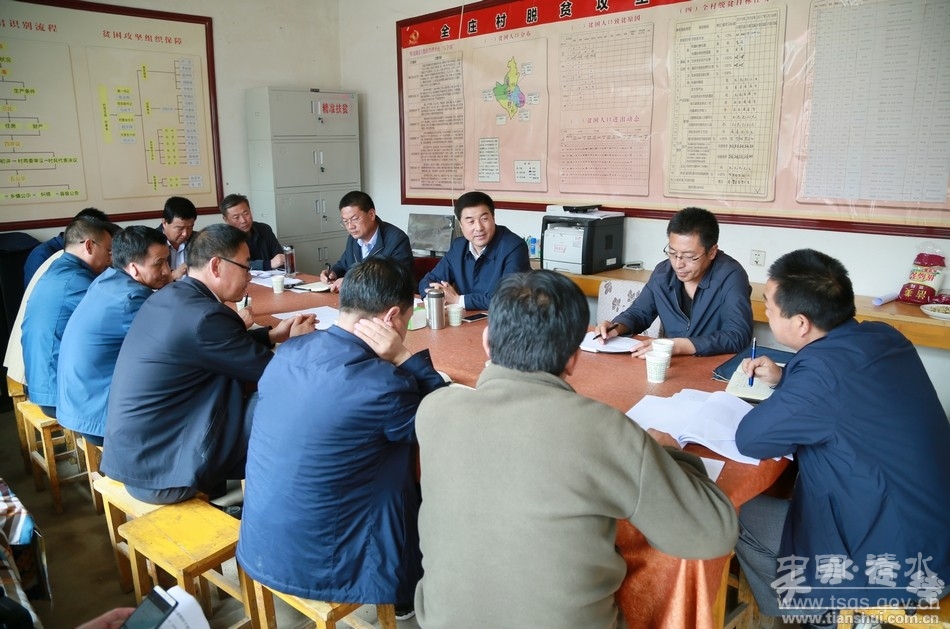 9月23日,市人大常委会副主任、清水县委书记刘天波带领县委办、扶贫办、财政局、发改局、交通局、水务局、畜牧局、国土局等单位负责人,深入秦亭镇调研深度贫困村脱贫攻坚工作。