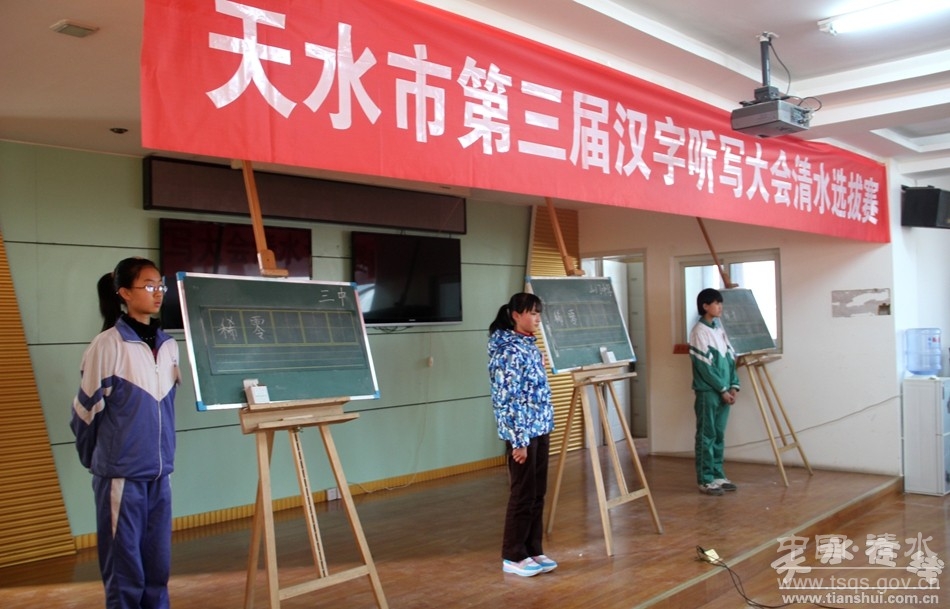 11月20日,天水市第三届汉字听写大会清水县选拔赛开赛。来自该县二中、三中、四中、五中、红堡中学、山门中学、秦亭中学、新城中学8支代表队﹙每支代表队各选派5位选手﹚,共计40位选手参加了比赛。进一步弘扬了中华优秀传统文化,全面培养了全社会规范使用汉字的意识,不断推进语言文字事业科学发展。