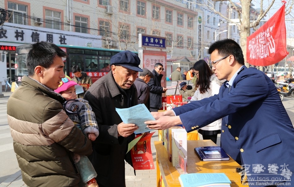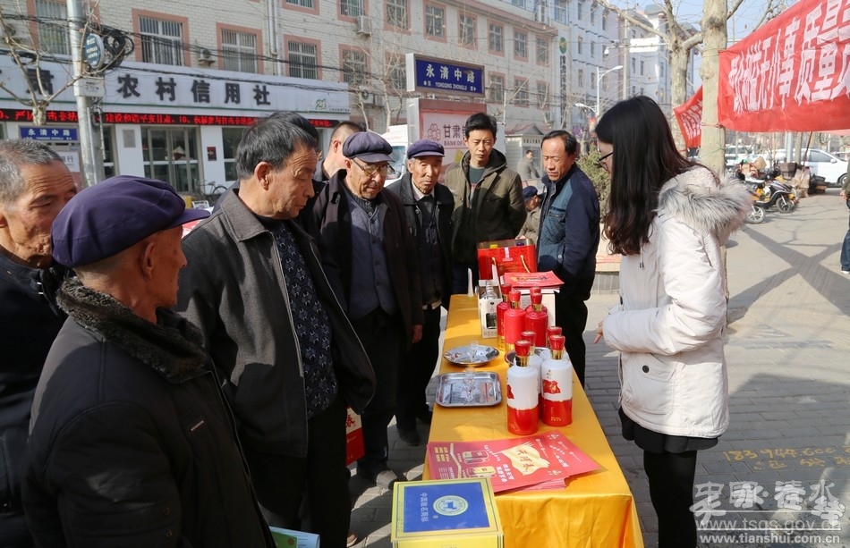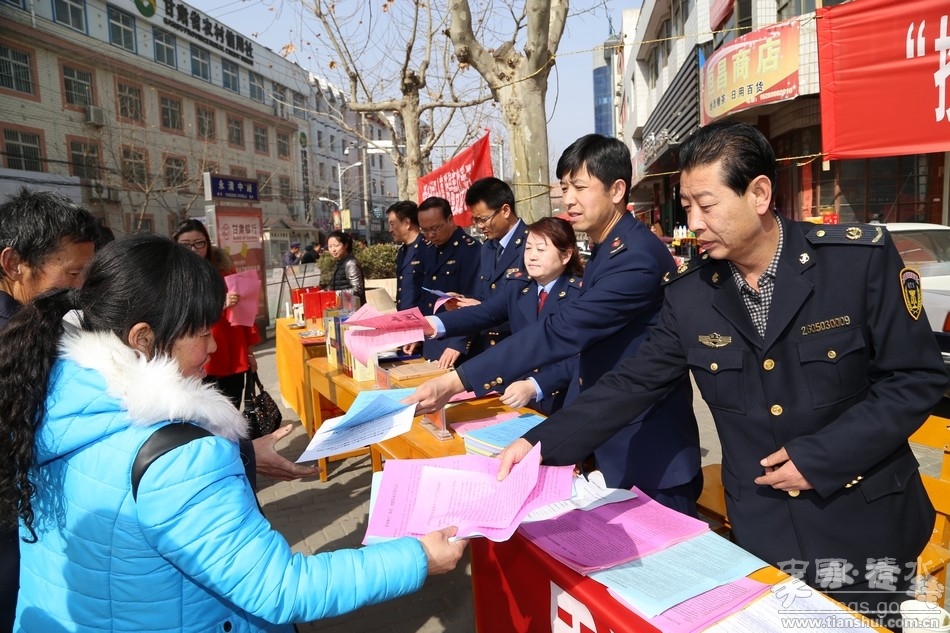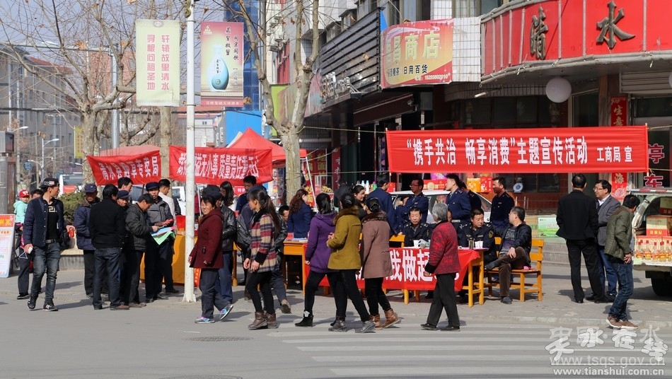 为纪念“3.15”国际消费者权益日,深入开展“携手共治,畅享消费”年主题宣传活动。3月13日,清水县工商局、质监局、司法局、食药监局、卫生监督所、烟草公司、天河酒业等相关部门联合开展了2015年“3.15”国际消费者权益日宣传活动。县委常委、组织部长周济,副县长安智辉出席活动,相关职能部门工作人员和社会各界群众参加了宣传活动。