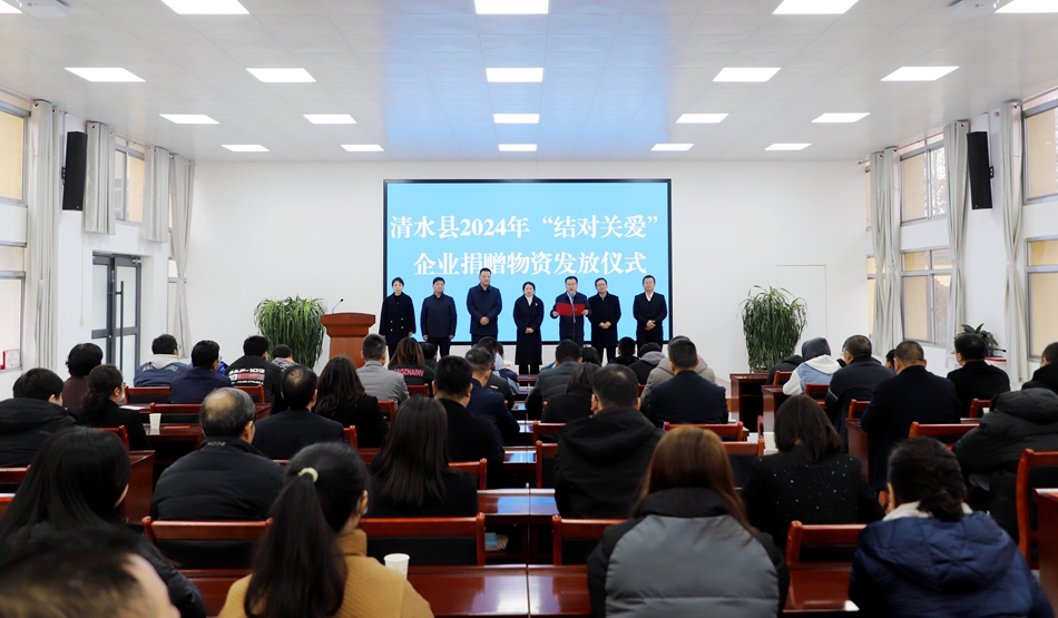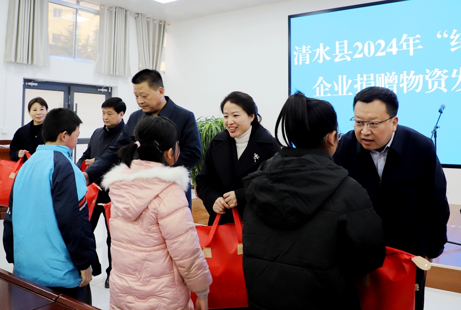 1月15日,清水县举行2024年“结对关爱”企业捐赠物资发放仪式。这既是县委、县政府深入学习贯彻习近平总书记关于做好关心下一代工作的重要指示批示精神的实际行动,也是扎实推进“结对帮扶·爱心甘肃”工程建设和“暖冬”行动的具体举措。