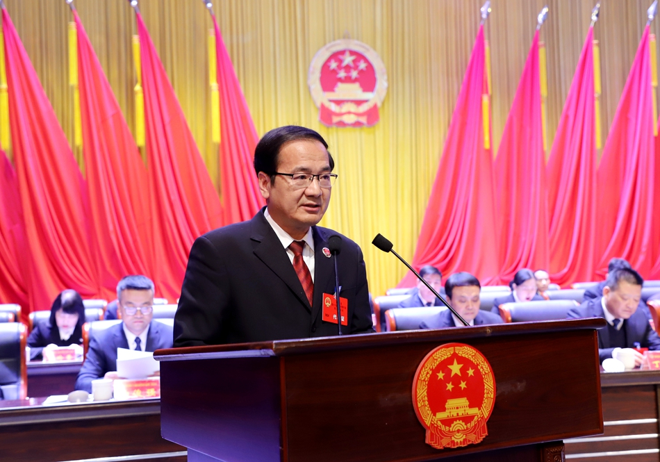 县人大常委会主任丁旺喜受县人大常委会委托作工作报告。他说,2023年是全面贯彻落实党的二十大精神的开局之年。一年来,县人大常委会在县委的坚强领导下,坚持以习近平新时代中国特色社会主义思想为指导,认真学习贯彻党的二十大精神,全面贯彻习近平总书记关于坚持和完善人民代表大会制度的重要思想、对甘肃重要讲话重要指示批示精神,认真落实党中央决策部署和省市县委工作要求,坚持党的领导、人民当家作主、依法治国有机统一,丰富和发展全过程人民民主清水实践,围绕中心,依法履职尽责,为推动全县经济社会高质量发展和民主法治建设作出了积极贡献。