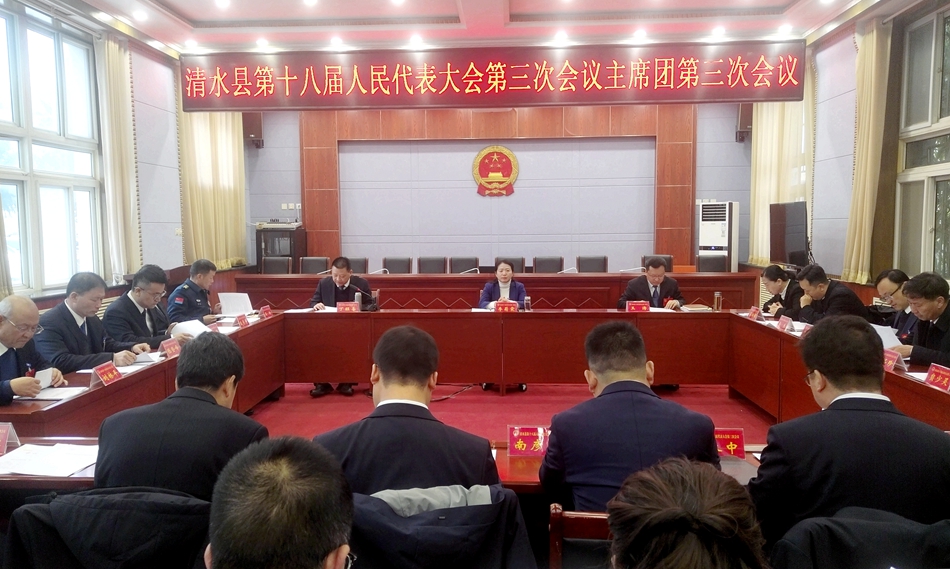 1月19日上午,清水县十八届人大三次会议主席团召开第三次会议。县人大常委会主任丁旺喜主持会议。