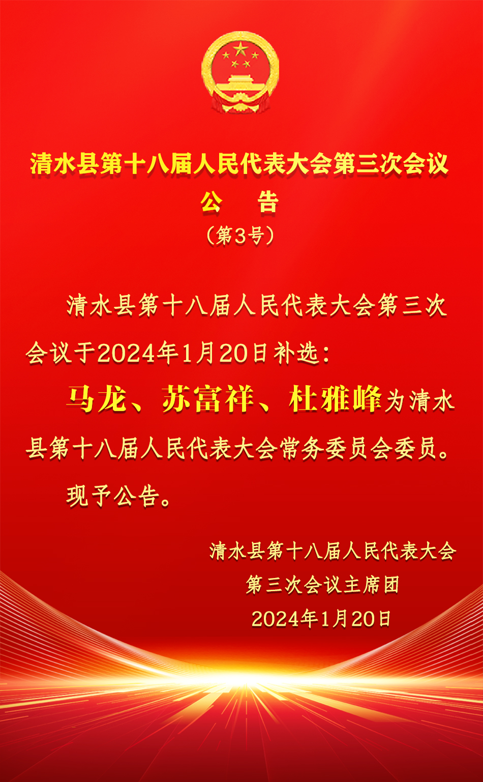 马龙、苏富祥、杜雅峰当选清水县第十八届人民代表大会常务委员会委员