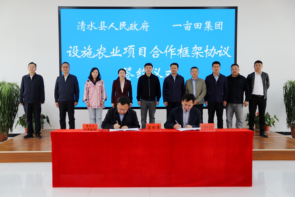4月15日,清水县与一亩田集团举行座谈会,双方就深化相关领域合作交流、延伸拓展农特产品精深加工链条进行深入交流,并签订设施农业项目合作框架协议。