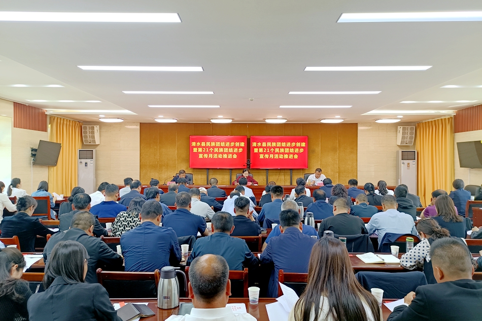会议强调,要深化学习,提高认识,把学习贯彻习近平总书记关于加强和改进民族工作的重要思想作为首要政治任务抓紧抓好,始终用最新思想理论武装头脑、指导实践、推动工作,不断夯实做好新时代党的民族工作的思想根基。要创新载体,丰富形式,各级各部门各单位要积极配合全县重点活动安排,推动形成全面动员、全域覆盖、全员参与的宣传局面,着力提升第21个民族团结进步宣传月活动质效。要瞄定目标,主动作为,各创建单位要对标对表国家、省、市民族团结进步创建测评指标体系,深化创建内涵、丰富创建形式、创新创建方法,全面提升全县民族团结进步创建工作水平。要加强领导,明确责任,全县上下要牢固树立“一盘棋”思想,强化统筹调度,加强沟通协调,密切协作配合,凝聚起齐抓共管的强大合力,奋力开创新时代民族团结进步事业新局面。(图/文 清水融媒记者 李榕)