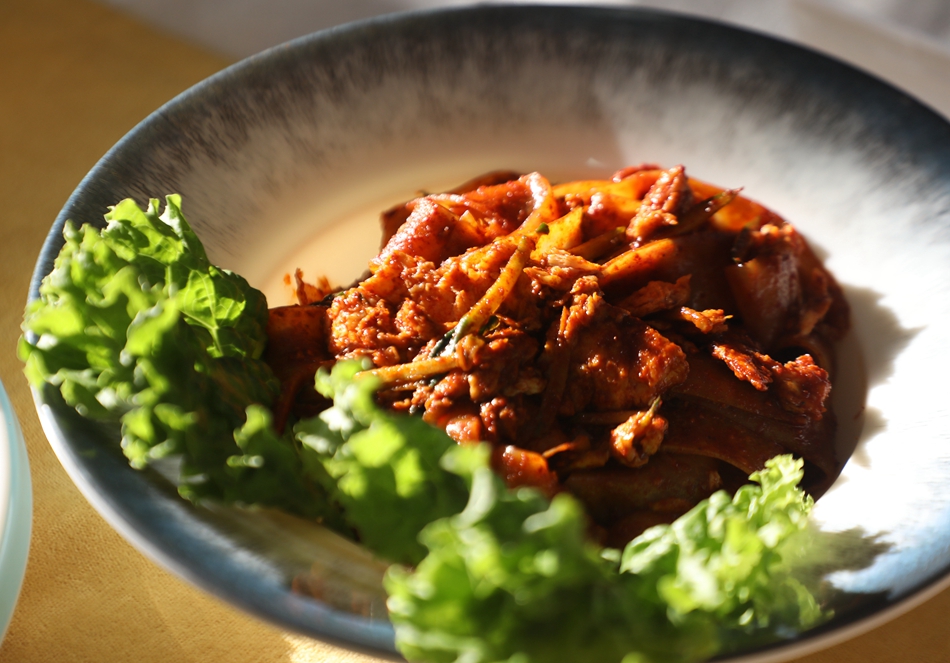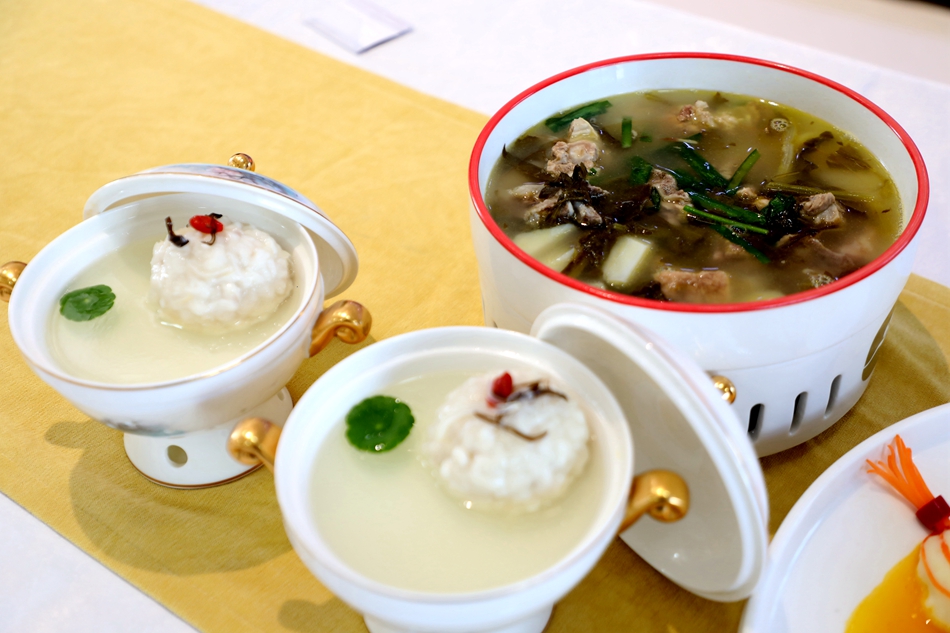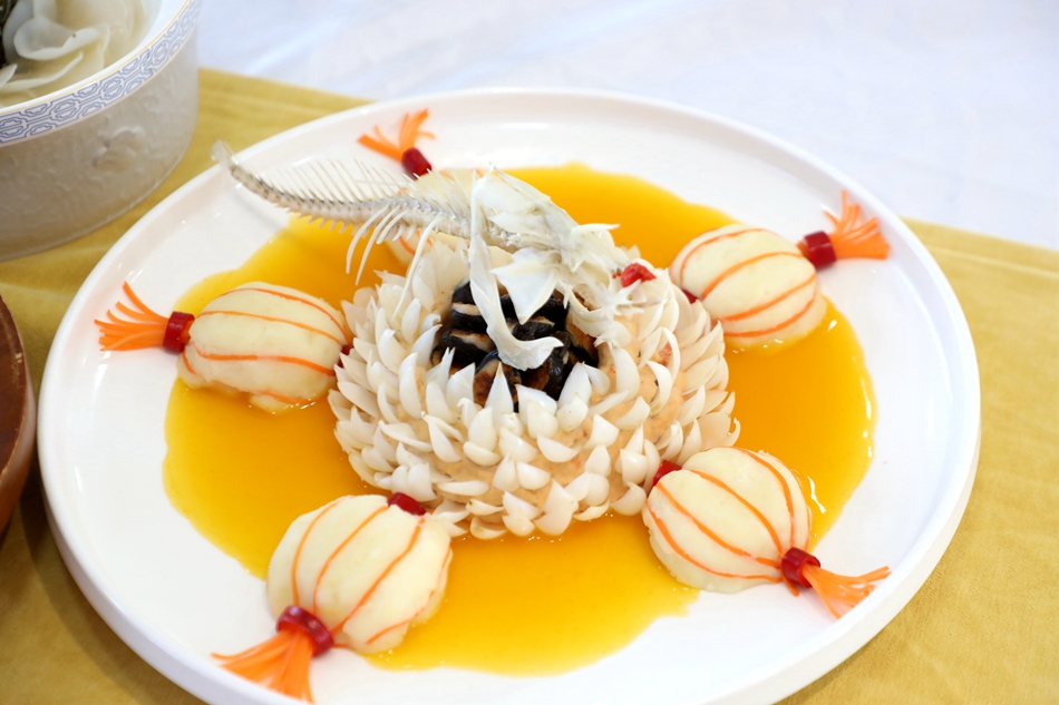 清水县鑫鼎轩大酒店餐饮部经理芦志诚说,“翡翠木耳酿虾胶这道菜是把虾仁剥壳、开背,手工打成虾胶,嵌入我们清水的黑木耳中,用平底锅煎至金黄,虾胶肉质滑嫩,木耳爽脆,富含蛋白质、膳食纤维和多种维生素,经过我们的精心摆盘,这道菜不仅颜值漂亮,而且营养丰富。”