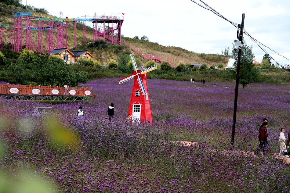 记者来到清水县北山生态景区看到,花海如潮,笑迎游人。放眼望去,薰衣草、马鞭草争相绽放,一幅绝美的紫色画卷拉开序幕。景区内新增天上云梯、大风车等设施拍照打卡,游客们穿梭在花海之间,或驻足欣赏,或拍照留念,脸上洋溢着幸福的笑容。滴水崖古堡放置仿古士兵供游客观赏、打卡,或模仿古装影视剧主角,或穿着将军服装拍照留念,“穿越”古代建筑,感受民俗文化。