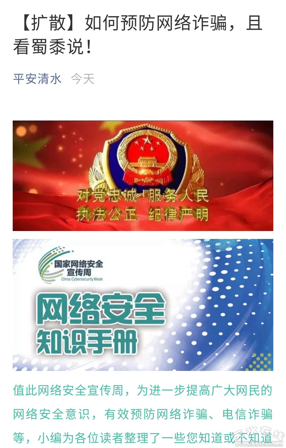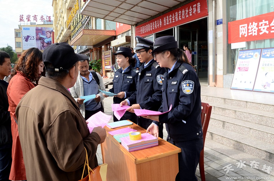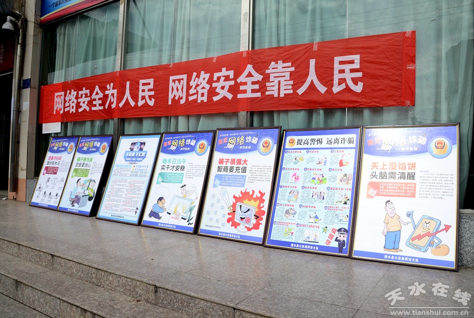 当天,清水县公安局组织网警在车站、广场等人群密集场所发放宣传单、展出展板,现场为群众解读网络安全法规,分析网络违法犯罪典型案件,详细告知群众应当如何防范网络诈骗,使群众掌握网络安全知识,了解网络安全法规。同时,清水县公安局网安大队利用微博、微信积极推送网络安全公益广告、网络安全基本知识,并通过发送公益短信的方式发动广大市民关注巡查执法账号,推介安全上网措施,动员群众积极参与网络违法举报,进一步扩大了宣讲活动影响力。