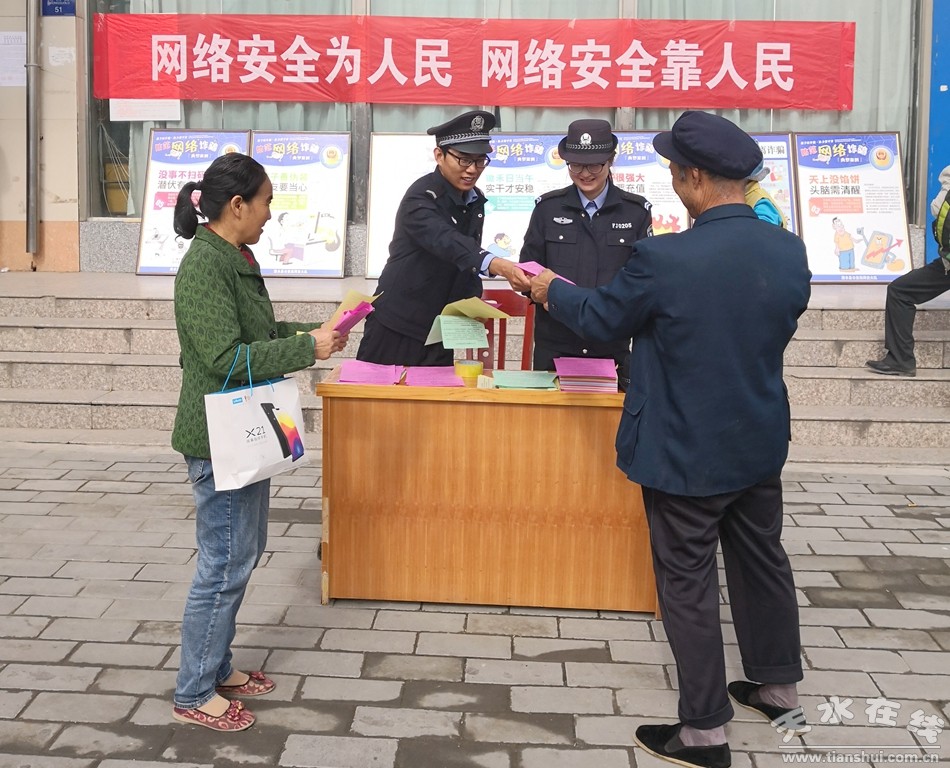 2018年9月17日至9月23日是国家网络安全宣传周。9月20日,清水县公安局网安大队结合网安工作实际,以“网络安全为人民,网络安全靠人民”为主题,线上线下全面开展宣传活动,倡导依法文明上网,普及网络安全相关法律法规,披露网络违法犯罪典型案件,加强互联网安全管理,增强群众网络安全的意识,共同维护网络空间安全。