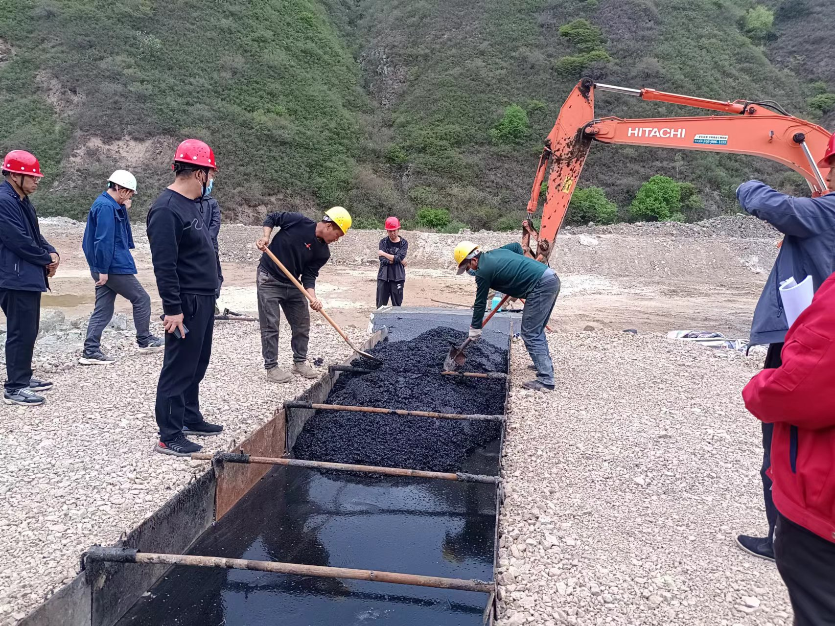为确保沥青心墙混凝土填筑施工顺利进行,清水县汤浴水库参建各方密切配合,完成了为期2个月的大坝沥青混凝土摊铺现场碾压实验,项目质量技术人员对摊铺碾压试验过程的施工工艺进行全面监督,对试验检测成果进行系统分析、复核。同时,清水县汤浴水库项目专班组织监理、EPC总承包方质量技术人员、设计代表开展了多次技术交底会议,协调解决有关方面的困难和问题,并对EPC总承包方制定的沥青混凝土施工前准备工作进行了全面系统的检查,目前各项准备工作已就绪。