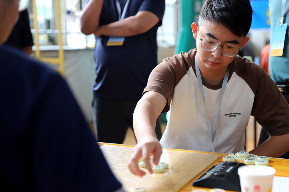 比赛现场,棋手们两两对决,隔着“楚河汉界”在棋盘中屏气凝神、排兵布阵、斗智角逐。棋盘上,兵来卒往、炮飞马跳,棋盘外,棋手们或低头沉思,或展颜欢笑,执子、落子有条不紊。