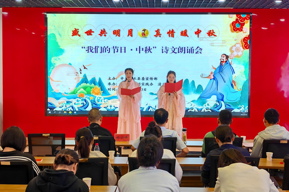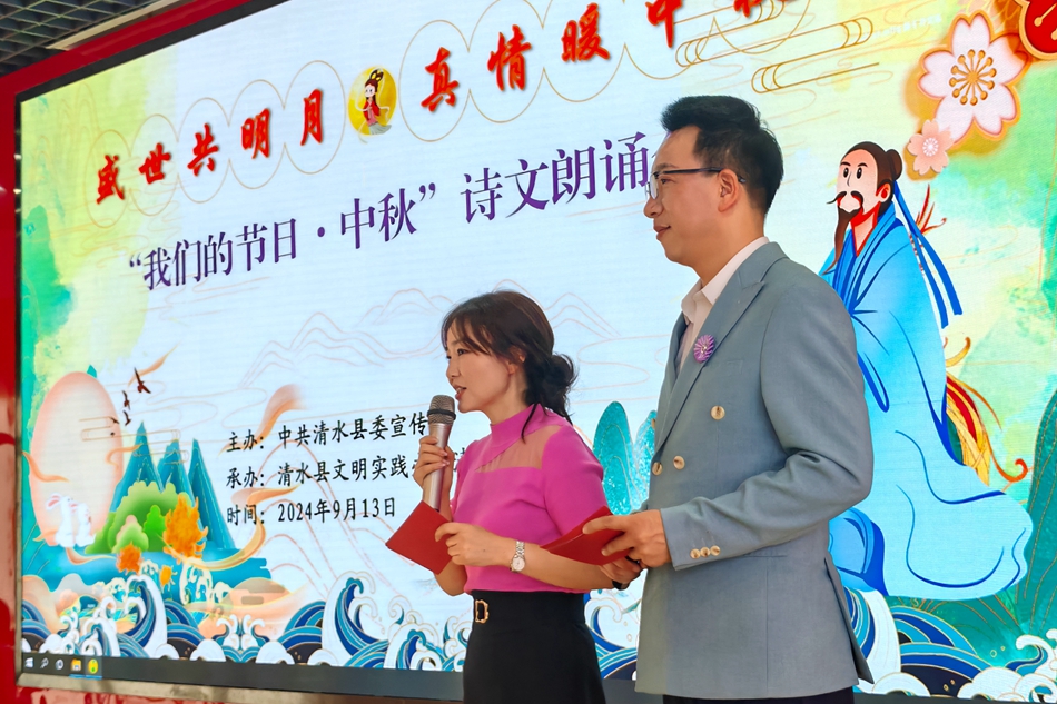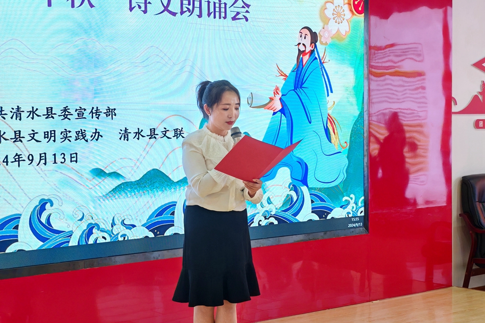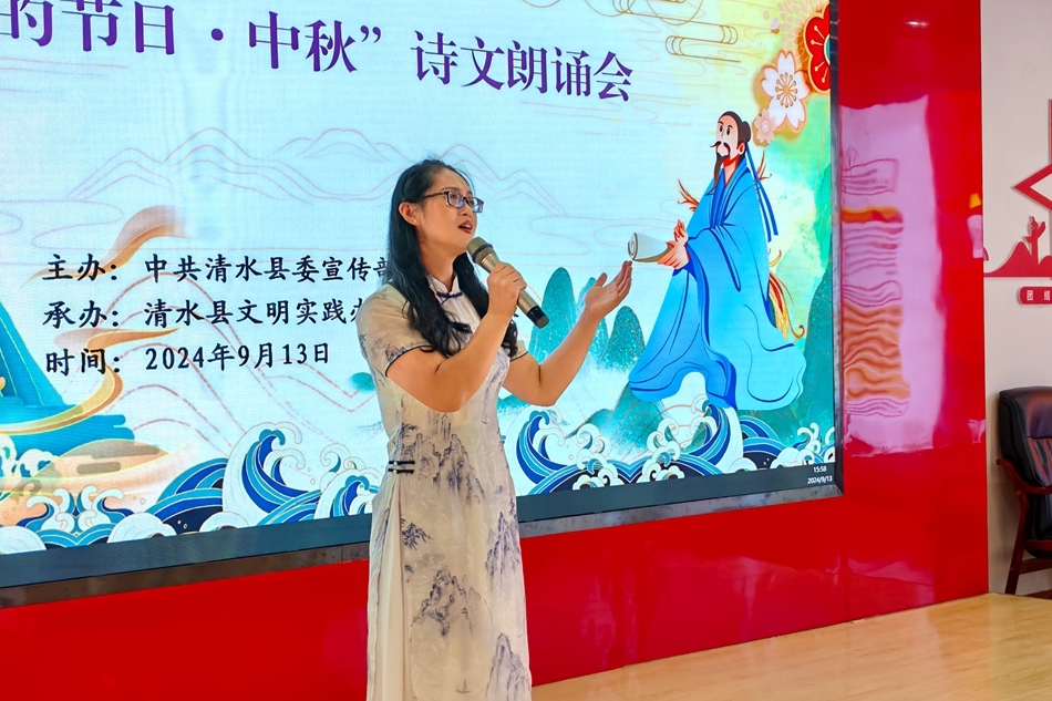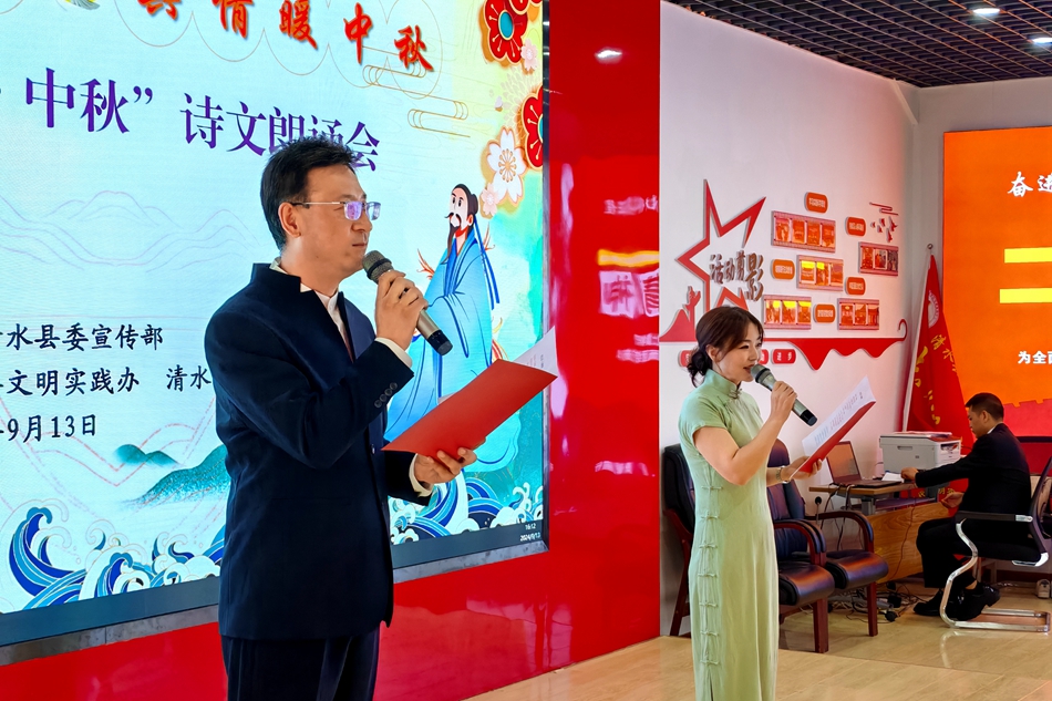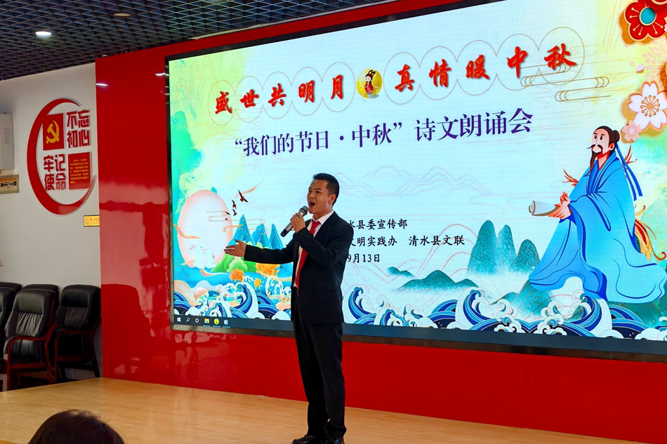 9月13日下午,清水县在新时代文明实践中心举办2024年“盛世共明月 真情暖中秋”“我们的节日·中秋”诗文朗诵会。