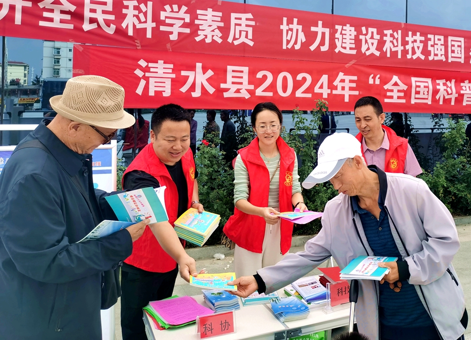 9月18日,清水县在轩辕广场开展以“提升全民科学素质 协力建设科技强国”为主题的2024年“全国科普日”宣传活动,持续开展科普活动,推动科研基础设施和创新基地有组织、常态化开放,服务高质量发展。