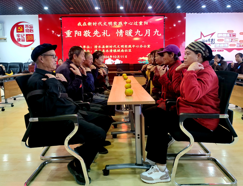 重阳节是中华民族的传统节日,为了弘扬尊老、敬老、爱老的传统美德,10月11日重阳节当天,清水县举办“我在新时代文明实践中心过重阳”活动,组织辖区内老年人一起包饺子、做游戏、聊家常,共度重阳佳节。