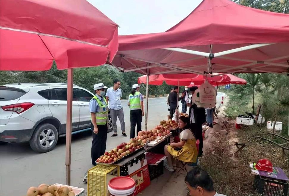 劝导二级路沿线路边摊点