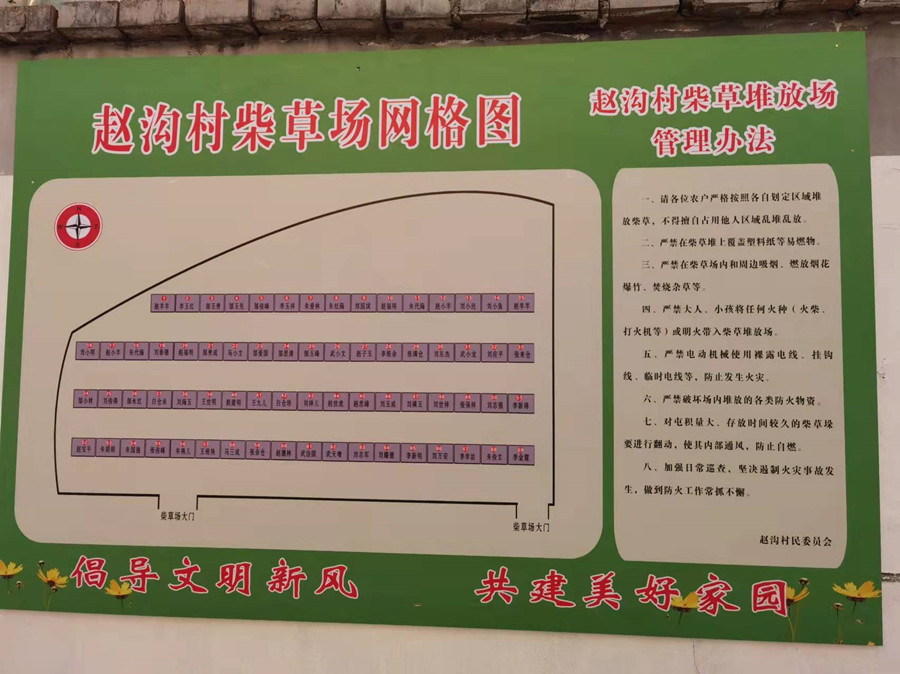 整顿规范柴草场。集中力量清理道路两侧、房前屋后、田间地头等乱堆乱放的农作物桔秆、清除杂草杂物堆积,将所有柴草统一归置柴草场,同时,平定柴草场,规划堆放点位,对点位进行了编号,做到统一规制,摆放有序。