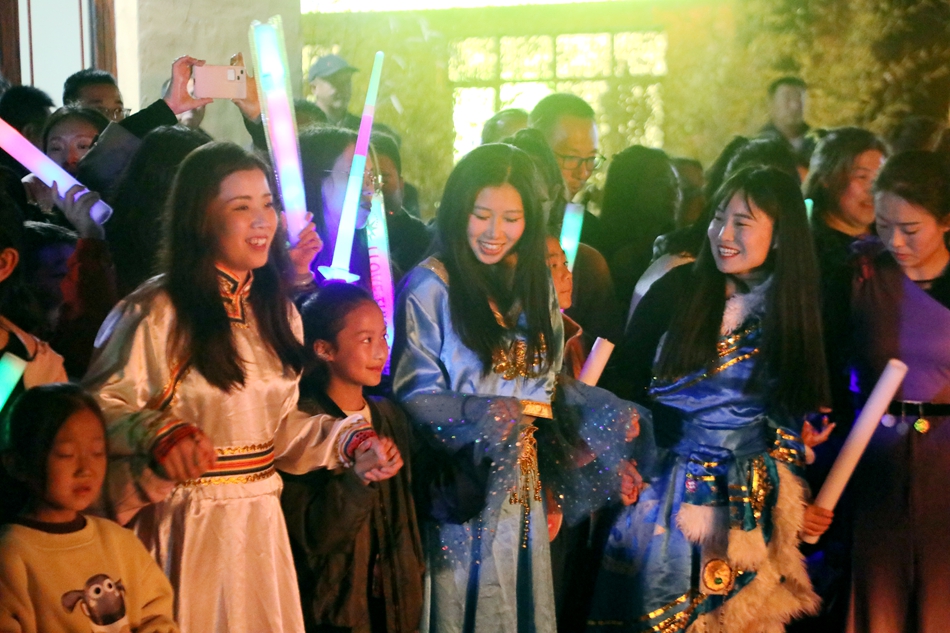 除了白天游玩体验之外,温泉村还启动了夜场模式。每逢周末温泉村会举办盛大的篝火晚会,游客们既能欣赏到精彩的文艺演出,参与热闹欢快的锅庄舞会,还能品尝农家乐和水景街的特色美食,充分体验视觉和舌尖的双重盛宴。