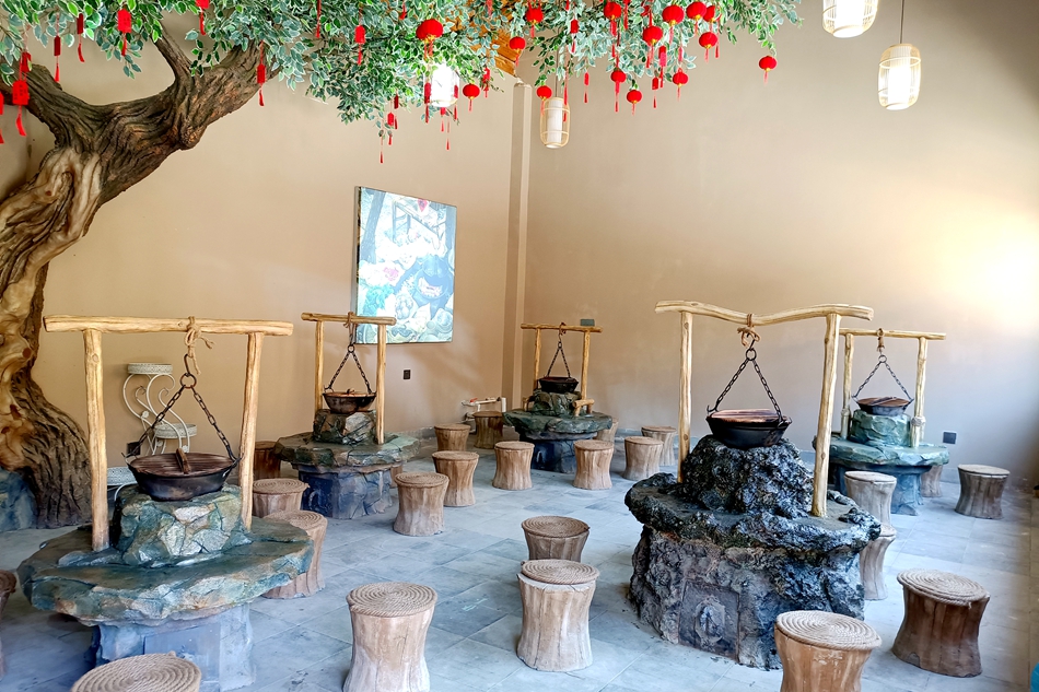 升级后的农家院焕然一新,吸引众多游客。毗邻农家乐的民俗水景街同样大受欢迎,简约的新中式风格屋舍内集合了童年怀旧、围炉煮茶、手工陶艺、吊锅鱼美食、特色产品等多元素店铺,“吃、住、行、游、购、娱”为一体的旅游新业态集中落地水景街,吸引了不少游客前来打卡小坐。
