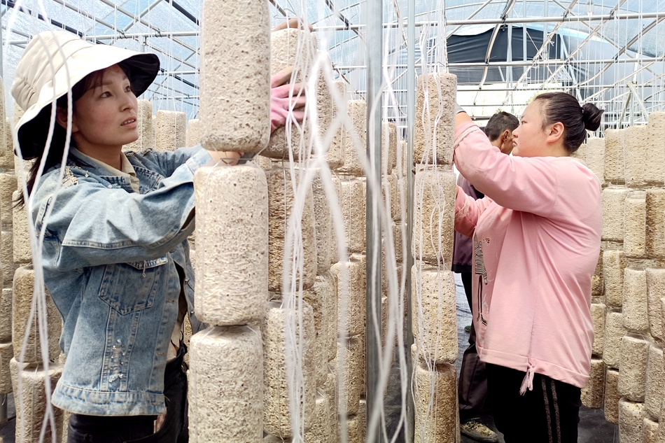 走进新城乡四合村食用菌产业园,宽敞的大棚拔地而起,工人们正在棚内吊挂菌棒。“我们村总共要挂90万菌棒,目前挂了53万多棒,每天都需要30多人过来工作,再过20天木耳头茬采摘期的时候用工会更多,估计要70-80人,工资标准是男工一天120元,女工一天80元。”新城乡四合村食用菌产业园种植主体负责人潘小东说。