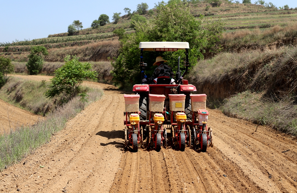 走进土门镇高庙村高标准农田,伴随着阵阵机械的轰鸣声,大型旋耕机在地里来回穿梭,进行第二轮翻犁,播种机紧随其后将一粒粒高粱种播种到地里,田间地头满满的“科技范”。