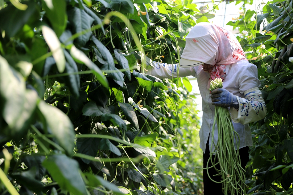 乡村和美离不开产业支撑。马沟村旁就是一幢幢蔬菜大棚,大棚内豇豆、辣椒、黄瓜等蔬菜均已进入成熟采摘期。豇豆棚内,翠绿的豇豆密密麻麻悬挂在藤蔓上,藤架间随处可见采摘人员的忙碌身影,采摘、扎捆、装车,现场一派繁忙热闹的丰收景象。
