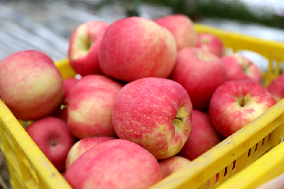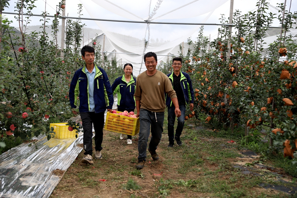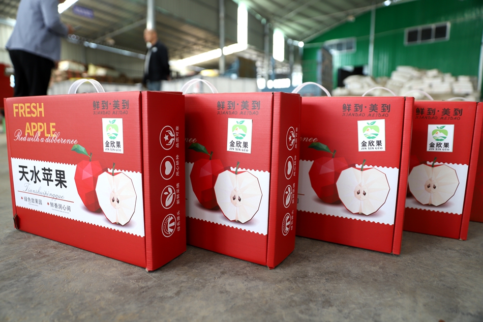 “我这果园共200亩,主要有嘎啦、秦脆、美味、马斯特红蛇等品种。目前上市的是秦脆。秦脆口感好,吃起来既脆又甜,鲜甜可口。我们目前以高端礼品盒进行销售。今年已是种植的第三年,挂果的第二年,收成很好。”金欣果种植农民专业合作社联合社负责人周建国说。