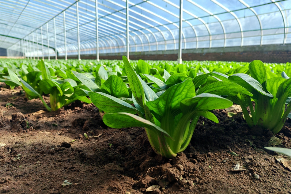 在白驼镇姚黄村现代农业产业园,大棚内的油菜和香菜一片嫩绿、长势喜人。姚黄村村民姚双保正在检查棚内油菜生长情况。他告诉记者,“我一直在菜棚里务工,这几天马上就要采摘油菜、香菜,效益也挺好,一天能挣80元。”