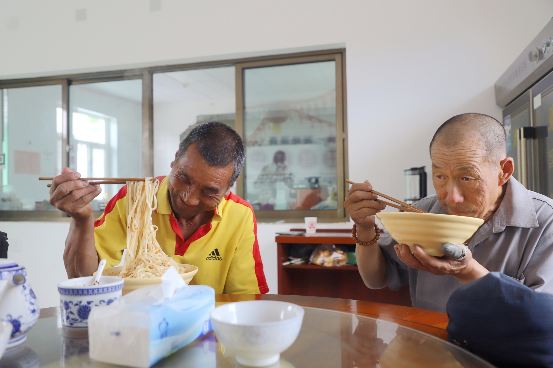 上午十一点,驿站宽敞明亮的餐厅里已是暖意融融。干净整洁的餐桌上,几位老人围坐在一起,吃着热气腾腾的饭菜。“以前总愁午饭没着落,现在好了,食堂每天饭不重样,又便宜又好吃。”老人雍虎忠边吃边说,脸上洋溢着满足的笑容,“吃完饭还能跟老伙计们下棋、打牌,一天过得充实又舒坦。”
