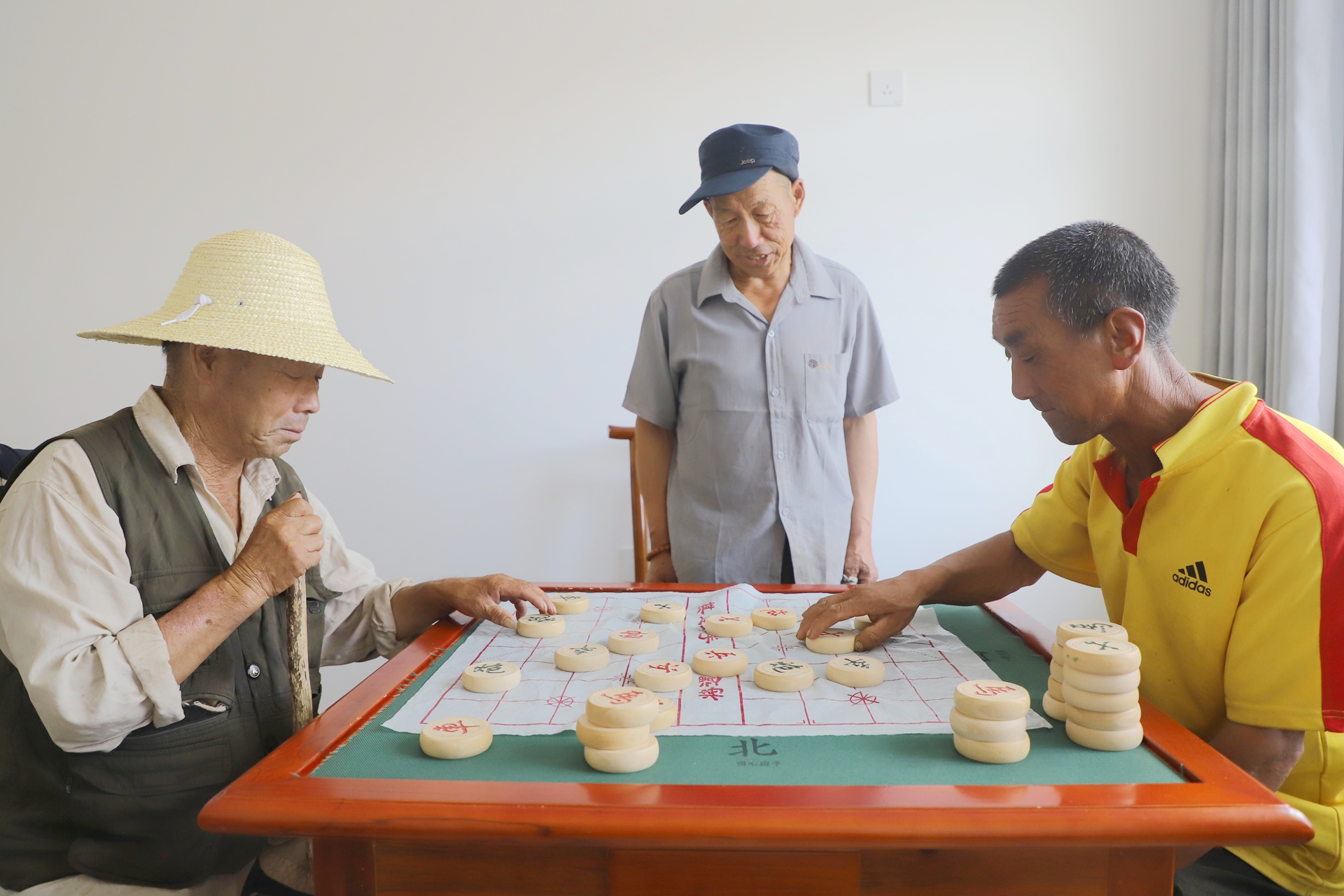 午后的驿站变成身心愉悦的乐园。棋牌室内,棋盘上的楚河汉界边鏖战正酣,围观老人专注又轻松地分析局势,脸上流露着切磋后的酣畅。一旁的理疗室内,几位老人正惬意地享受着按摩服务,卫生院医师一边为老人推拿肩颈,一边教他们简单的运动方法。隔壁的书画区里,几位书法爱好者正在专心致志地临摹字帖,墨香四溢;报刊架前,有人安静地翻阅着最新的报刊。
