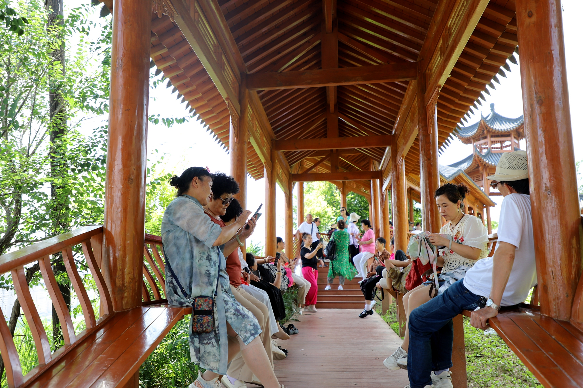 游客张敏说:“我们老年人来体验一下,这边空气又好、又舒服,生活充满了阳光,我们下次还来。”