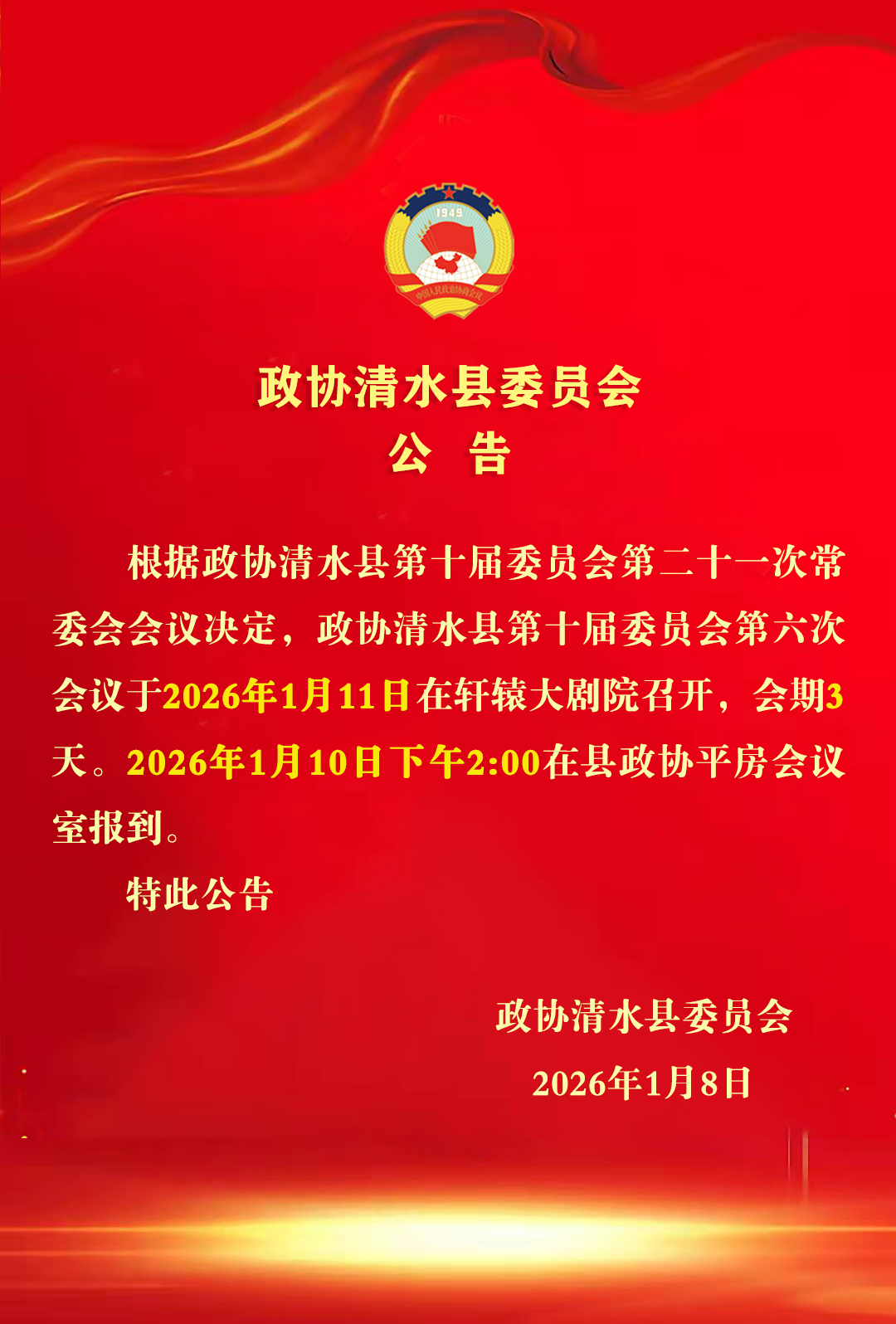发布时间: 2026年01月09日 16:43 来源: 清水县融媒体中心 预览次数: