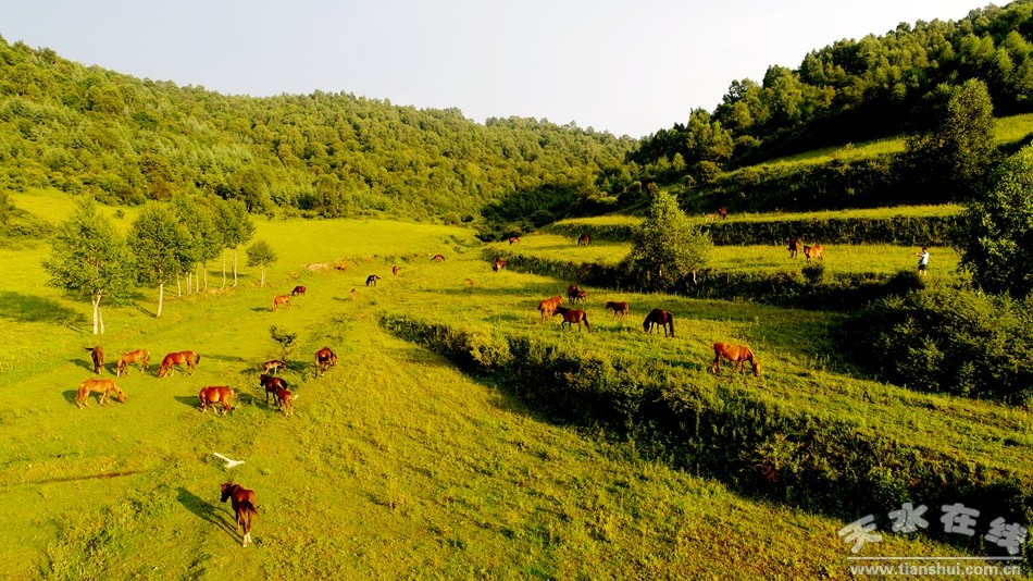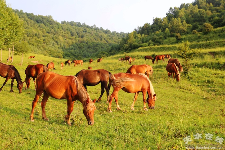 张吕牧场位于清水县秦亭镇东北部15公里处,地处关山东麓,草地面积400多亩,降水丰富,水草茂盛,年平均气温5-8 ℃,属高寒阴湿山区。独特的地理环境,悠久的养马历史,都让世代居住于此的人们对养马有着独特的感情,夏日的牧场,骏马在碧绿的草地上纵横驰骋,嘶鸣欢叫......这都让怀抱青山绿水,吮吸天然氧吧,坐看蓝天云卷云舒的人们,不禁联想起这方土地历史的神秘和悠久。