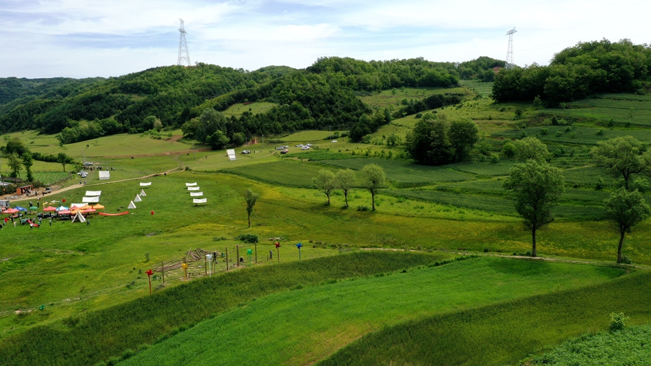 地处笔架山山麓的草川铺镇尖山秦营现在正是一年中最为优美及舒适的时节,蓝天白云绿草地,黄色的小花点缀其中,美丽且浪漫,游客们或围坐一起谈天说地,或悠闲散步欣赏美景,或躺平放空,尽享自由惬意时光。