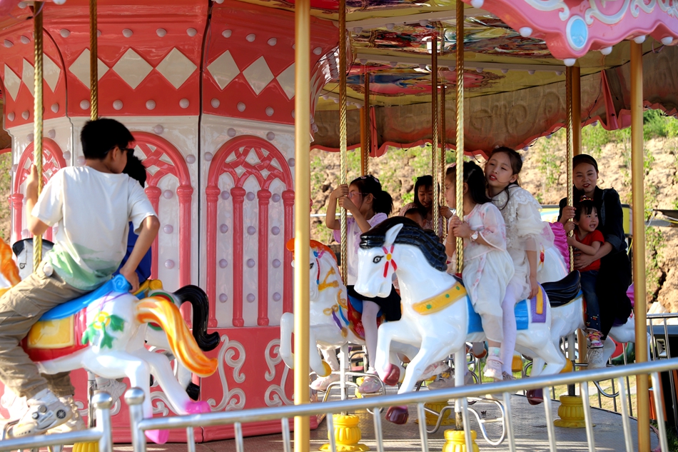 花舞北山下还有专为儿童游乐和体能锻炼设计的七彩乐园,在这里可以体验到网红桥、七彩滑道、飞龙秋千、小猪赛跑、网红蹦床等40多种娱乐项目,还可以亲近自然,体验喂兔子养鸽子的乐趣。