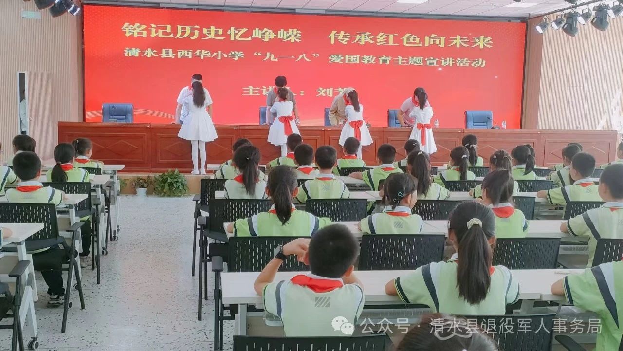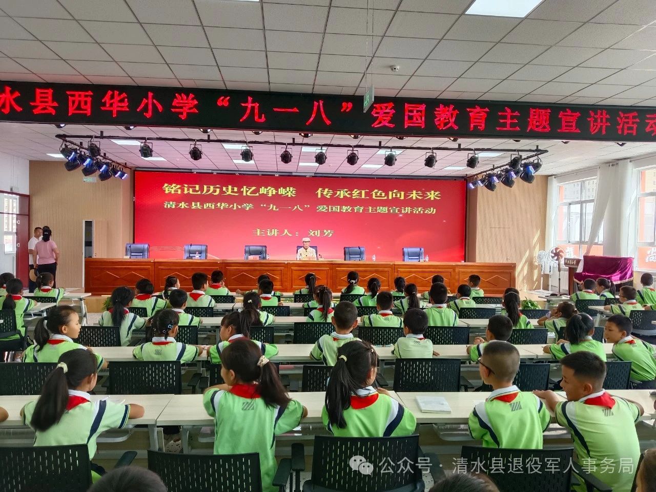 在“九一八”事变发生93周年之际,为回顾抗战历史,缅怀中国共产党人带领中国人民抵抗侵略的丰功伟绩,进一步加强青少年爱国主义教育和革命传统教育,9月18日,清水县退役军人事务局邀请抗美援朝老兵刘芳同志在西华小学开展了以“铭记历史忆峥嵘 传承红色向未来”为主题的“九一八”爱国教育主题宣讲活动。