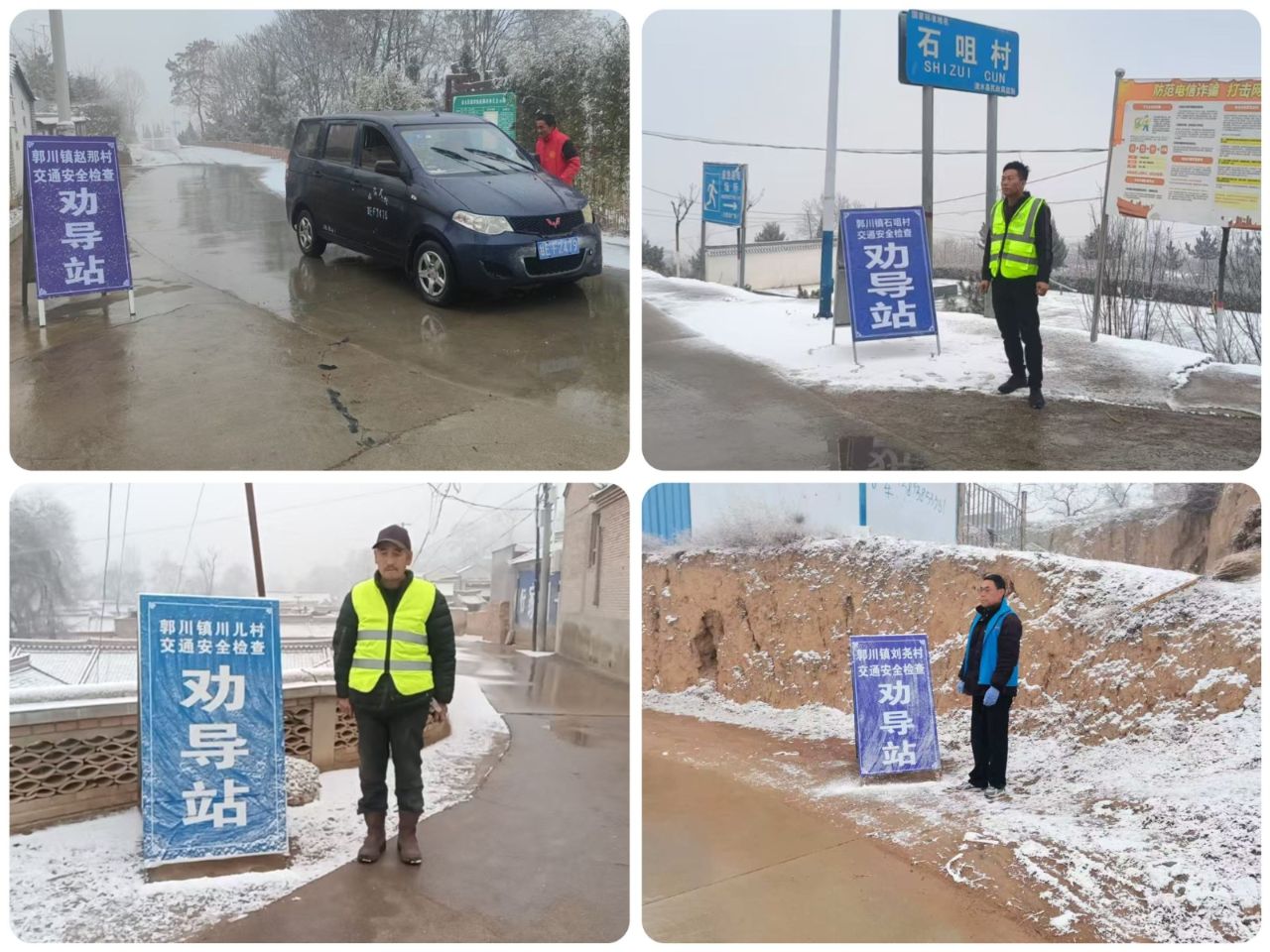 镇应急管理办公室联合交警中队和镇村两级交通安全劝导员克服极寒天气,坚守岗位,在辖区主干道、村组路口等重点区域路段,对过往车辆逐一劝导检查,重点提醒驾驶员雪天减速慢行、增大车距,并督促安装防滑链。同时,通过微信群、村大喇叭等多种形式及时发布冰雪天气预警信息,宣传道路交通安全相关法律法规知识、雪天道路交通安全常识,行车注意事项和应急避险措施等,进一步提升群众安全意识,最大限度保障群众出行安全。