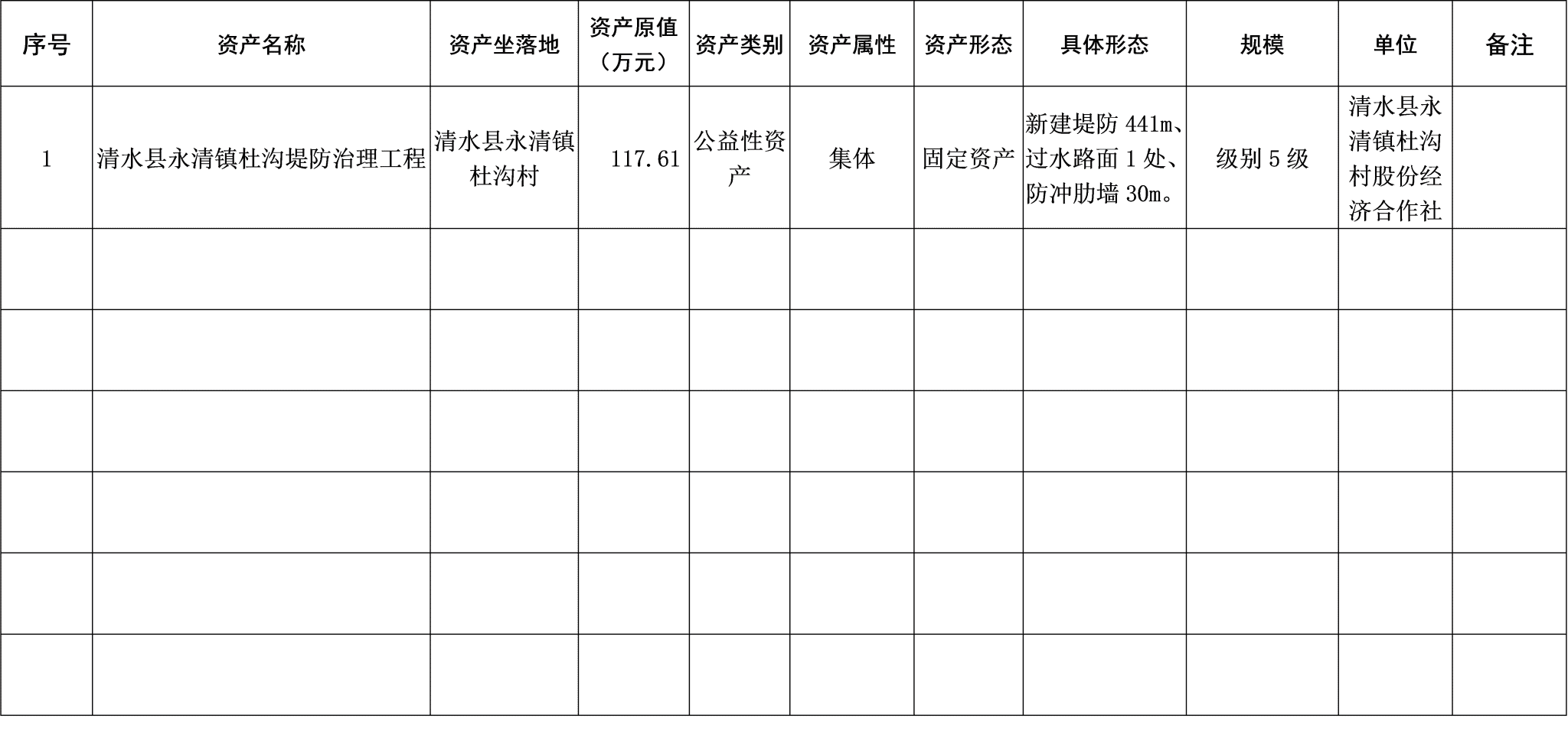 清水县永清镇杜沟堤防治理工程拟确权项目资产明细表