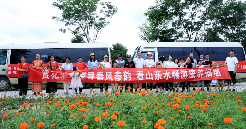 来自县域内的多组家庭定点集合,统一乘坐旅游大巴出发,先后游览了花舞北山、永清镇万寿菊种植片带、非子牧场等地。在移步换景的旅途中感知家乡深厚的文化底蕴,体验“轩辕故里·康养福地”优美的自然风光、良好的生态环境和丰富的旅游及康养资源。