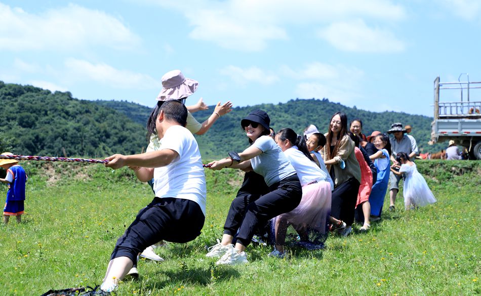 伴随着窗外一路的生态美景和车内的欢声笑语,游客们到达了一日游的最后一站——非子牧场,在翠绿柔软的草原上来一场拔河比赛,骑上骏马领略眼前的牧场风光,和家人好友在露营帐篷野炊,或者单纯的躺在草地上吹吹草原的风,游客们在这里享受了一段独特而又惬意的休闲时光。