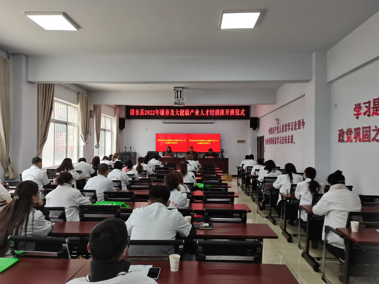 10月24日,由清水县委组织部牵头、县人社局主办的康养及大健康产业人才培训班在县委党校开班。县委组织部副部长、县委党校、卫健局、人社局等部门负责人,以及中医养生馆、民营医院康养从业人员参加开班仪式。