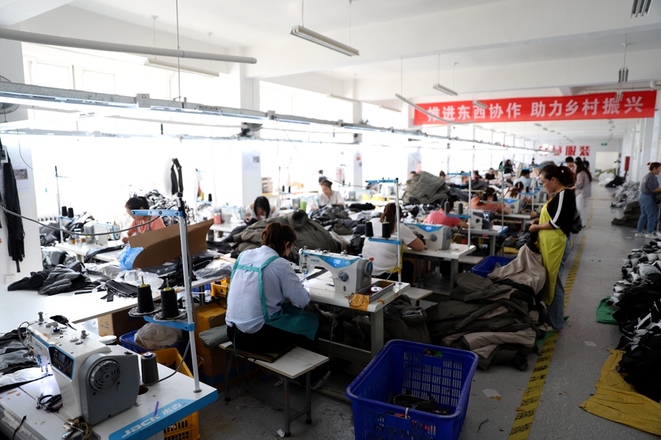 来到清水县轩蔓服装有限公司,百余名工人们正在裁剪、缝制、整烫、包装衣物,为职工专门配备的职工子女托管班桌椅设施齐全。