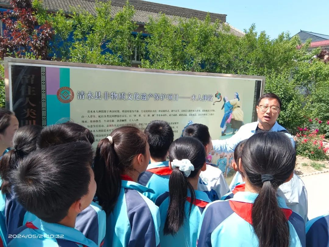 文化馆的各位演职人员为孩子们表演了精彩的文艺节目。文艺展演以“新时代文化馆:人民的终身美育学校”为主题。伴随着喧天的鼓声,精彩的节目轮番登台,木人摔跤表演、葫芦丝曲、秧歌舞等一个个节目精彩上演,展示了文化馆人健康向上的良好精神风貌。演出在原创舞蹈《丁香花开》中落下帷幕。整场文艺展演彰显时代风貌、悦享幸福味道。看完精彩的节目之后,又参观了非遗展览,清水剪纸传承人陈进录、木人摔跤传承人缑红斌现场为孩子们讲解了非遗知识,让学生们进一步了解了文化馆和非遗项目。