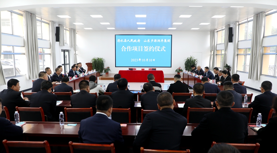 10月10日,清水县人民政府与山东乡源润丰生态发展集团有限公司举行合作项目签约仪式。市政协副主席、清水县委书记马越垠,山东乡源润丰生态发展集团有限公司董事长刘杰,县领导李菊霞、丁旺喜、蔡俊杰等出席签约仪式。