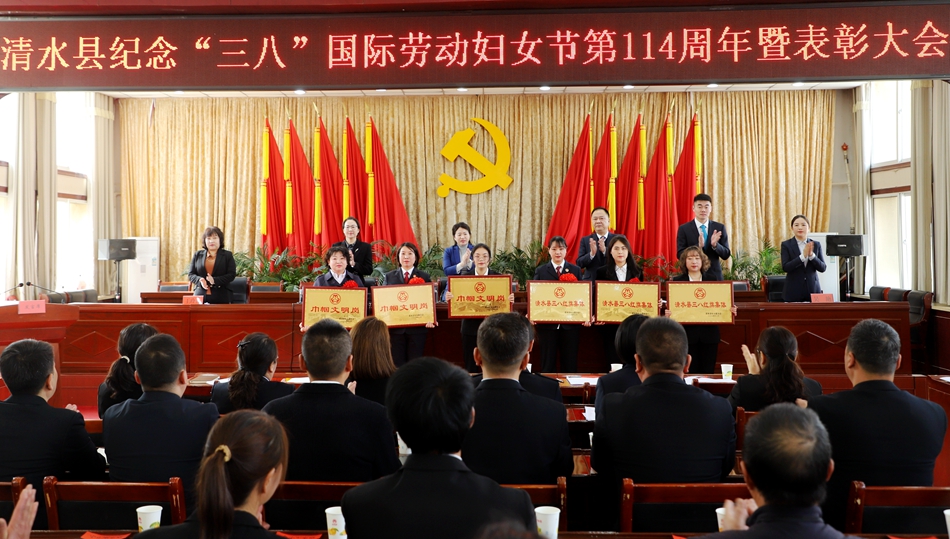 3月7日下午,清水县召开纪念“三八”国际劳动妇女节第114周年暨表彰大会。县委书记李菊霞出席会议并讲话。