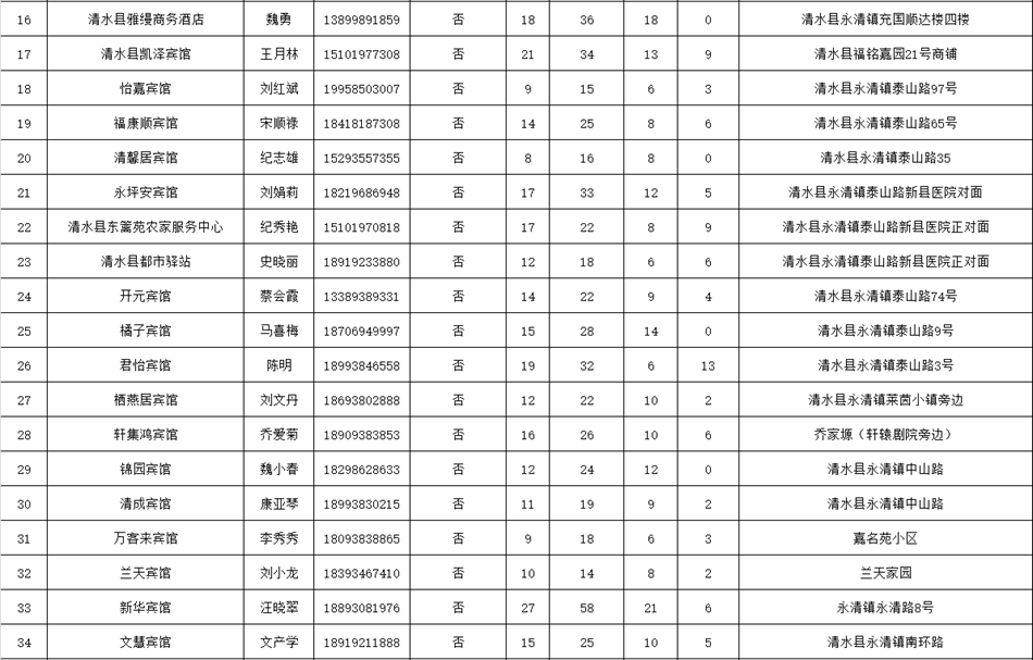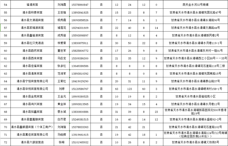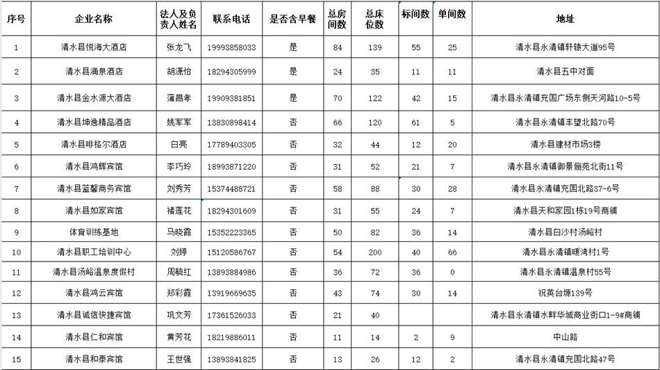 据了解,清水县商务局、文旅局等相关部门也在积极做好服务保障工作,通过及时公布县内住宿单位的地址、联系电话,为游客提前预订住宿提供方便。
