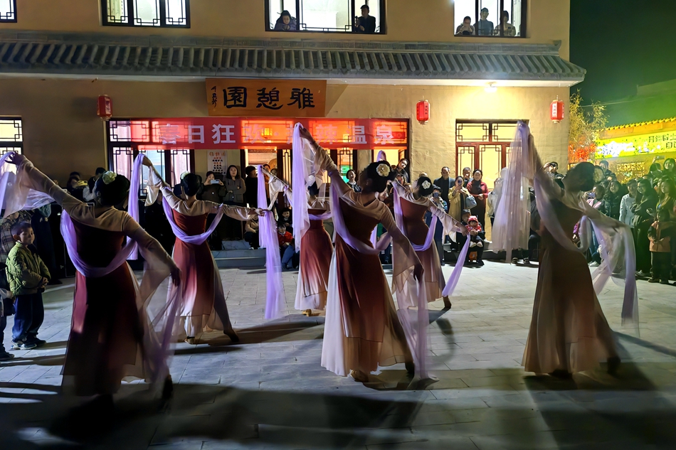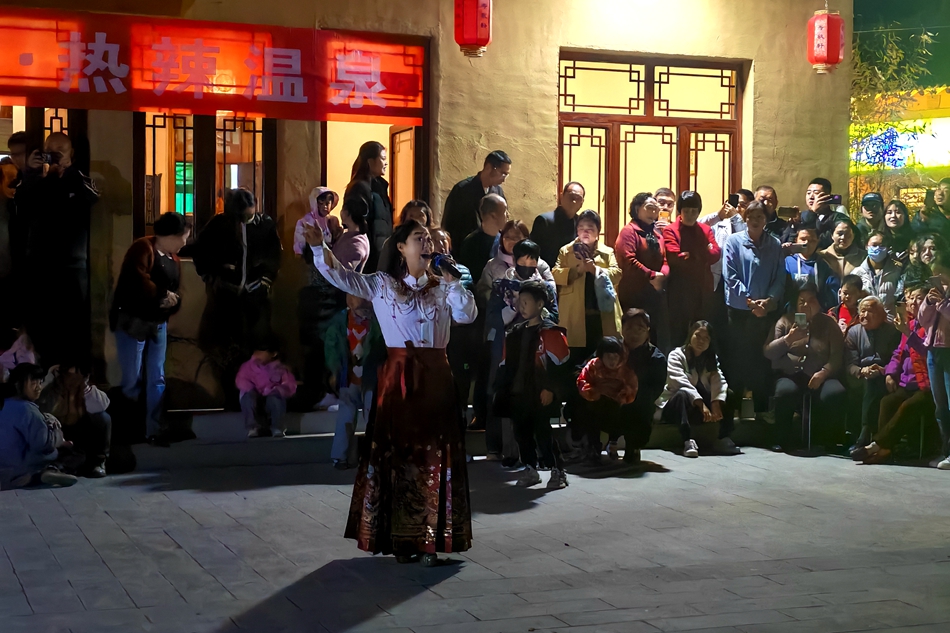 除了歌舞表演和篝火晚会,温泉村极具田园特色的农家乐、“围炉煮茶”、童年记忆“你好时光”店铺也推出了丰富的活动和农家美食,吸引游客驻足期间,在江湖驿站体验一顿充满江湖气息的可口美食,畅玩的同时也满足了味蕾的享受。